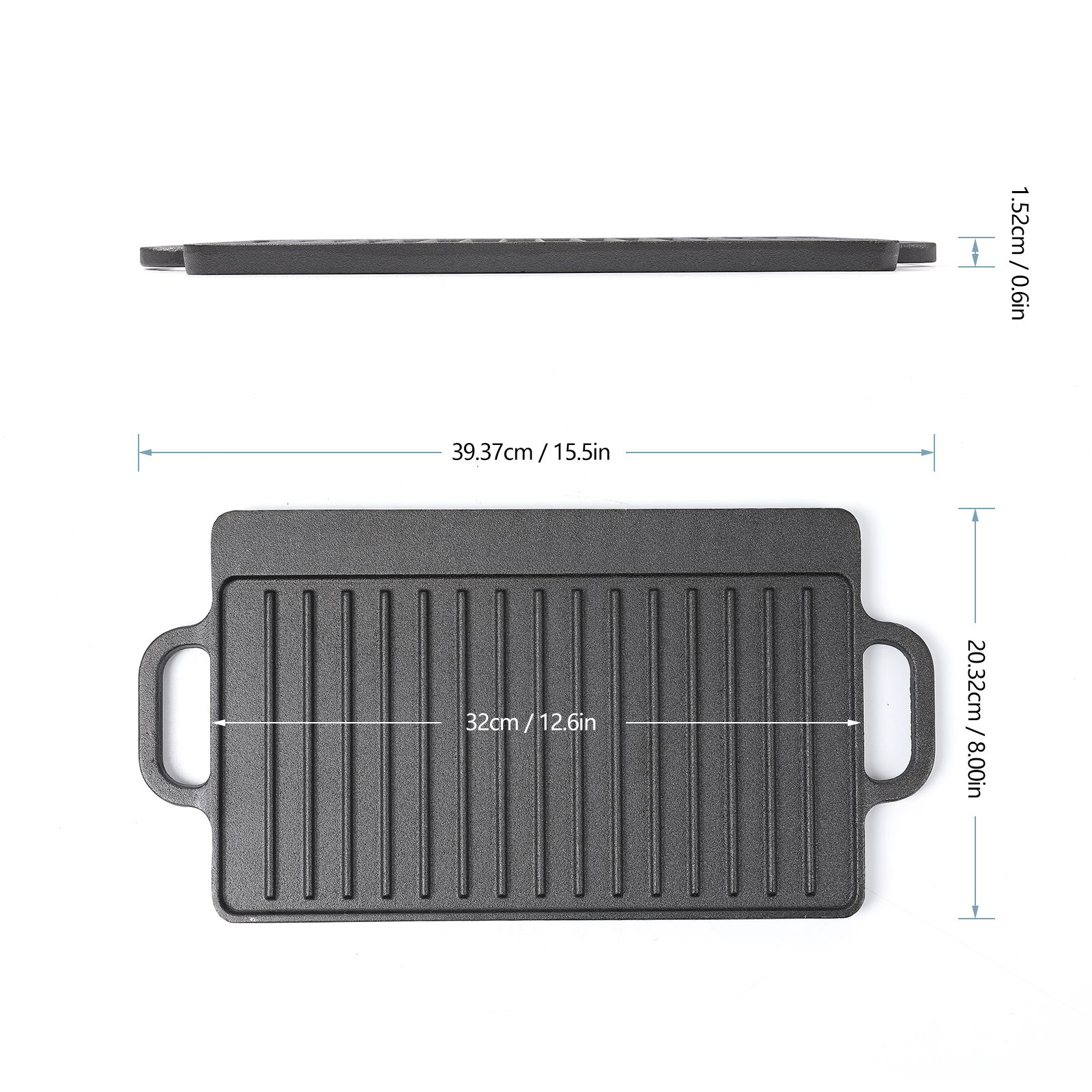 Searing meat, chicken & fish. Camping, fishing & general use. Cooking on single, 2 &3 burner stoves, Induction cooking Size:12.6"x8" Large Enough for the Family, Versatile Enough for your Recipes. The 12.6" x 8" Reversible Cast Iron Rectangular Griddle, If you need a flat cooking surface, you got it or maybe you want grill marks on that chicken? Just turn it around to expose its double personality. It has been pre-seasoned, making it nonstick and it is just waiting for you to start flipping it with recipes.